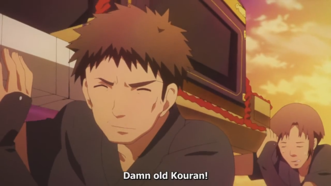 Back to the good guys. The nee-chan is leading a little Shinto-looking prayer session, as you do in Nil Kamui.